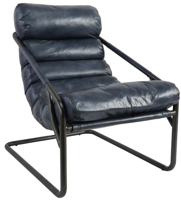 Lounge in style and comfort with this handsome chair featuring a supportive channel design and supple leather upholstery. Framed with thin, black metal, this chair blends vintage elements with modern minimalism.Read More