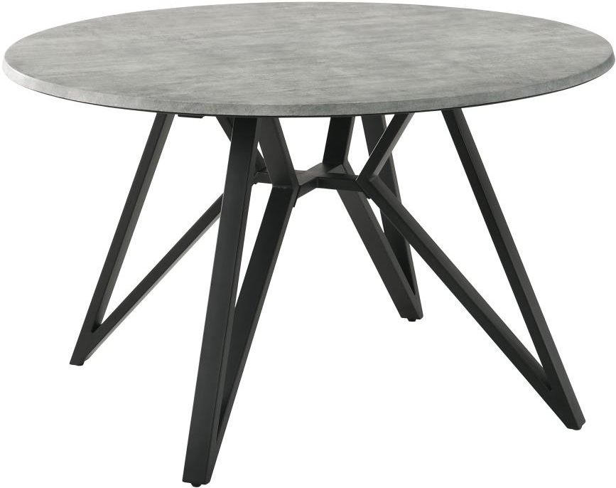 A contemporary piece for everyday dining, the Coaster® Concrete/Gunmetal 50" Round Dining Table features an architectural metal base with a dark gunmetal finish, complemented by its versatile gray concrete-look veneer tabletop.Read More