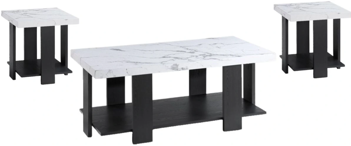This contemporary cocktail set presents a bold statement in minimalist design, featuring a sleek rectangular coffee table as the centerpiece, flanked by two matching end tables. Each piece boasts a sturdy construction with clean lines and a striking faux marble finish in a classic white hue, embodying both durability and modern elegance.Read More