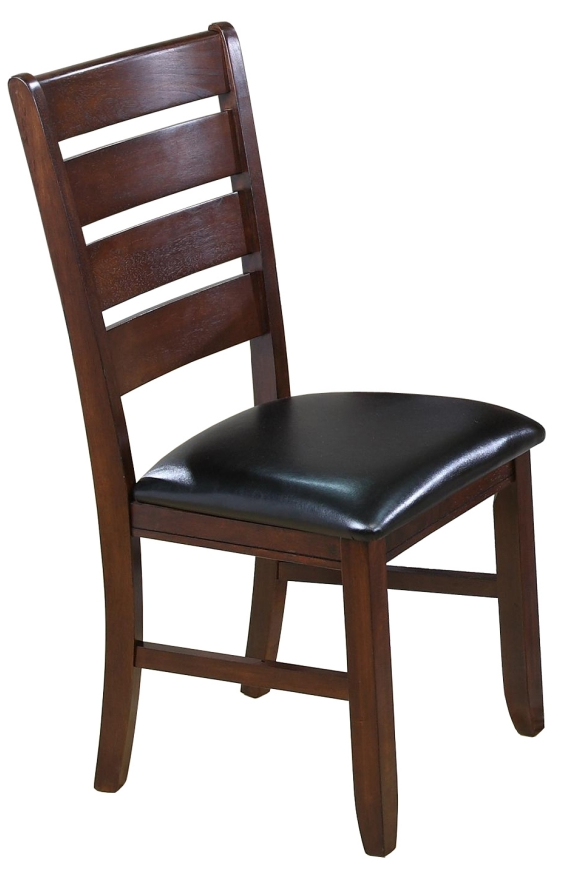 With a leather-looking upholstered seat, this dining side chair adds modern style and convenience. Use the chair at any of the two rectangular dining table options. The soft backrest style ladder finishes the chair's sleek look.Read More
