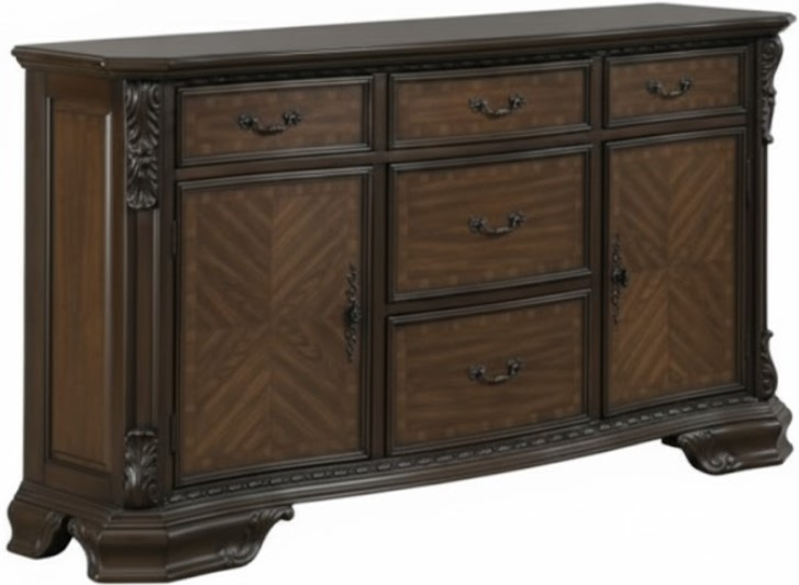 The Kiera Buffet from Crown Mark offers timeless elegance and practical storage. Finished in rich coffee brown, it features ornate detailing, ample cabinet space, and smooth drawers. Its sturdy construction ensures durability, making it a stylish and functional dining addition.Read More