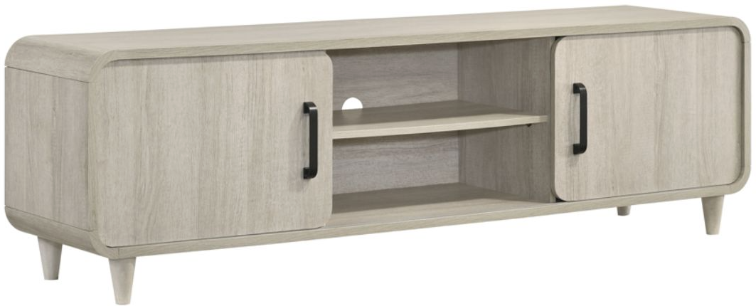 The Nyomi TV Stand from Crown Mark is a sleek, modern piece designed to enhance any living space. Featuring a clean white finish, open shelving, and spacious storage compartments, it blends style and functionality, providing ample space for media essentials.Read More