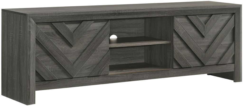 The Valor TV stand from Crown Mark combines modern design with functional storage. Featuring a sleek gray finish, clean lines, and sturdy construction, it offers ample space for media devices, decorative items, and essentials. Its contemporary style complements various home décor themes effortlessly.Read More