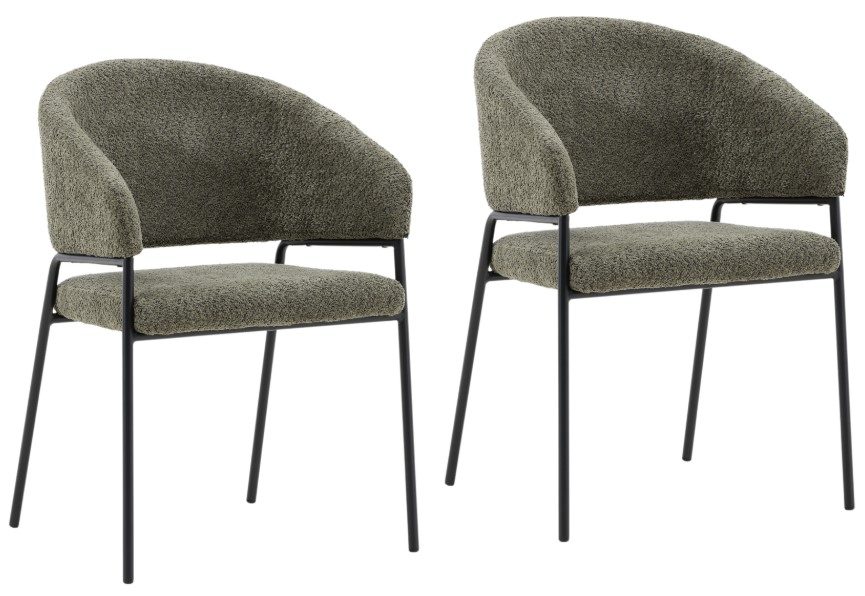 The Dovetail Furniture Cathey dining chair set features two chairs upholstered in olive green boucle fabric, offering a soft, textured feel. Supported by sturdy iron frames, these chairs blend modern design with comfort. Their versatile aesthetic complements various dining settings, adding a touch of contemporary elegance to your space.Read More