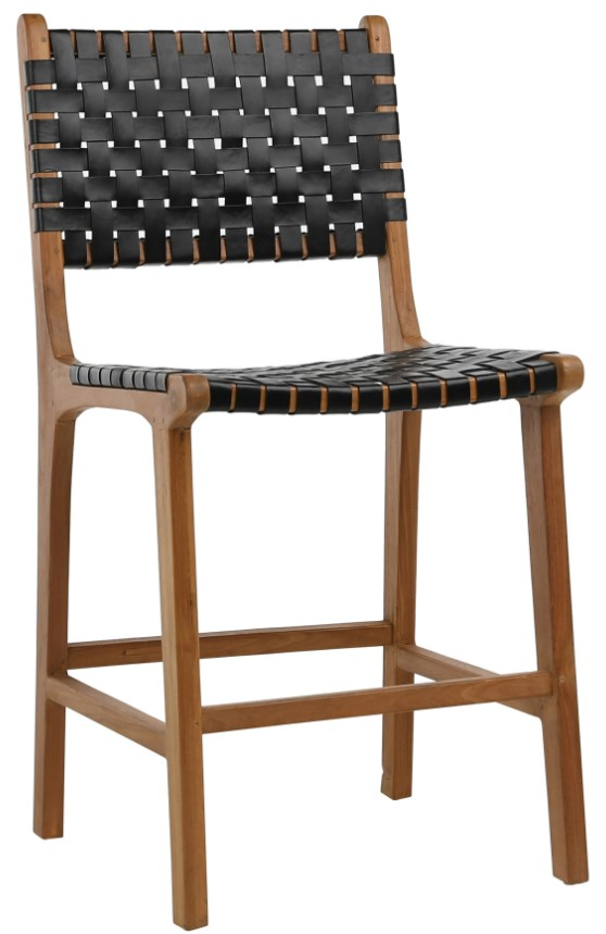 Bring classic modern style to your sitting arrangement with our exclusive counter stools. Full-grain black leather wrapped around a solid teak wood frame. The handwoven leather featured in the seat and backrest showcases detailed craftsmanship for a tailored touch. This counter stool is the perfect shade to complement your existing color palette.Read More