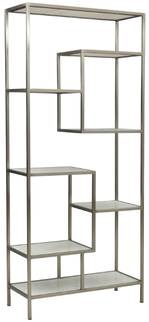 Streamlined for a cubic modern glam look, this features an open design that will breathe life into any space of your home. The brushed nickel finished frame and white marble shelves create a simple, airy bookcase with plenty of space for books and decorative accents.Read More
