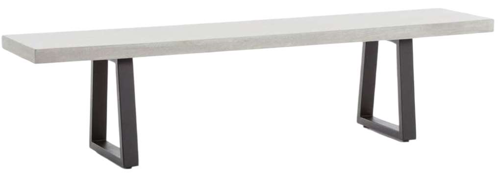 A strikingly simple poly-resin bench derived from river sand is polished to a smooth sheen. Angled, matte black iron legs add architectural appeal to bench-style seating—great solo or paired with Cyrus Dining Table, indoors or out. Slight color variance is to be expected and speaks to lava stone's organic nature.Read More