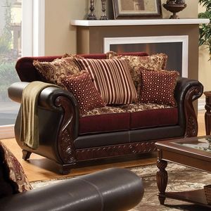With a mix of patterns and textures, this smart seating group has attractive carved trim and extra designer cushions, and is perfect for a traditional home. Made of fabric, leatherette, solid wood and others.Read More