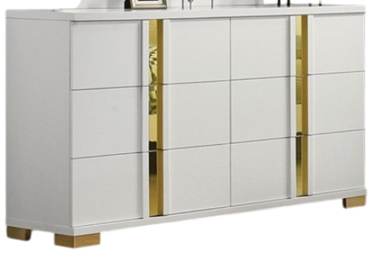 The Furniture of America® Lillestrom Gold/White Dresser features a chic design with a white finish complemented by gold accents. It offers ample storage with spacious drawers, perfect for organizing clothing or essentials. The elegant combination of colors adds a touch of luxury and sophistication to any bedroom or living space.Read More