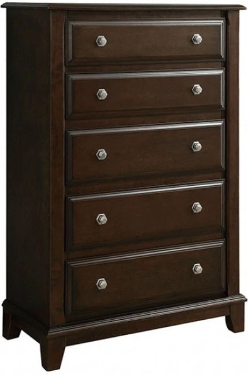Litchville Chest with felt-lined top drawers and hexagon shaped drawer pulls. Felt-lined top drawers provide safe haven for more delicate possessions, hidden behind the bold paneling designs of each drawer front.