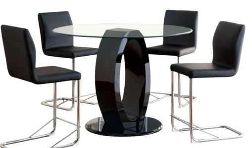 Pair your dining room with this simple yet eye-catching dining set design. Oval bases support the tempered glass tops while padded leatherette chairs create an air of modern elegance with the help of sleek chrome legs.Read More