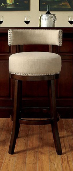 Accessorize your kitchen in a subtle yet luxurious way with these neutral-toned bar chairs. Supported on rich, dark wooden legs, the fabric padded seats and backrests provide a comfortable seating experience for you and your guests. Nailhead trim adds a hint of contemporary charm for a beautiful and timeless accent piece.Read More