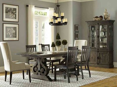 Perfectly proportioned to accommodate sprawling school crafts, fits of amateur bread baking or the usual holiday assemblage, our classically inspired Bellamy group maintains its pristine demeanor no matter what the task. Piled high with projects as it does all on its own, this group features pine solids and matte black with pewter highlights.Read More