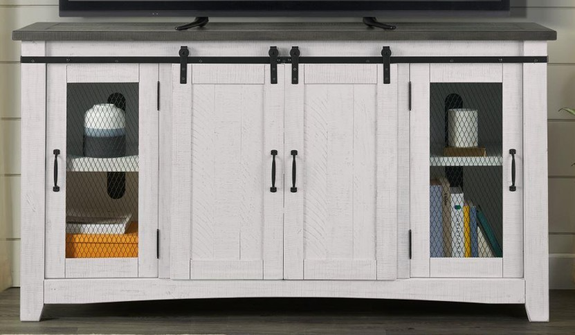 The Martin Svensson Rustic media console offers sturdy support for TVs and media equipment. It features cabinets and shelves for organized storage of electronics, games, and accessories. The gray and white finish adds a distinctive touch while keeping entertainment essentials neatly arranged and accessible.Read More