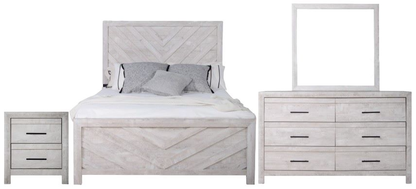 Introducing the Biscayne bedroom set, a comprehensive ensemble featuring a stylish bed, six-drawer dresser, mirror, five-drawer chest, and two-drawer nightstand. Crafted with durable manufactured wood and finished with eco-friendly laminated surfaces, this set promises strength and stability. The light, airy driftwood finish creates a relaxing atmosphere, perfect for unwinding after a busy day.Read More