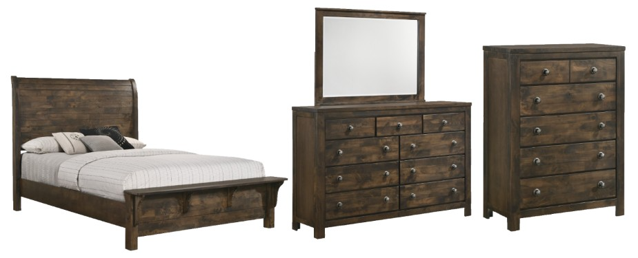 The Blue Ridge 4-piece set includes a bed, dresser, mirror, and chest. Featuring timeless design, durable craftsmanship, and ample storage, it creates a complete bedroom ensemble with both style and functionality for everyday living.Read More