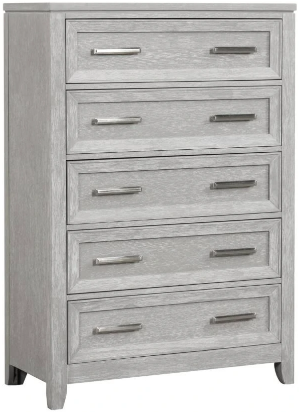 Multi-Step Finish: The beauty of the natural wood grain is enhanced with a multi-step process including wire brushing and white glazing that results in a light, clear mist gray finish