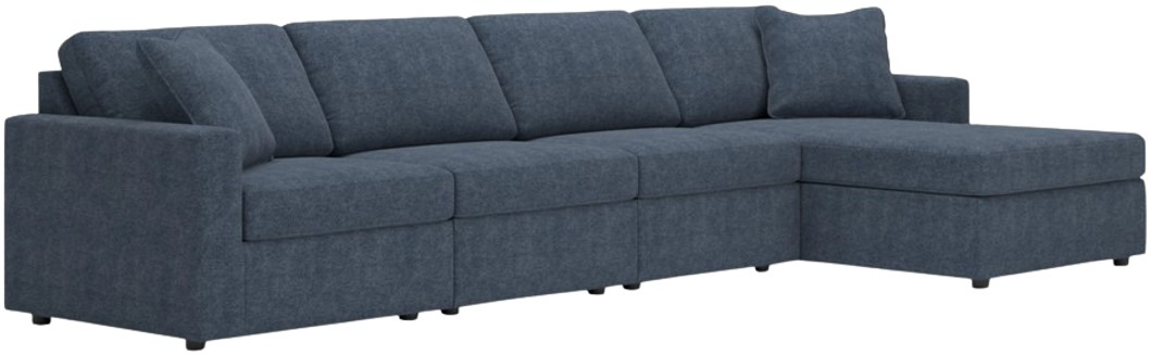 Includes 4 Modular Pieces: Left-arm facing corner chair, 2 armless chairs and right-arm facing corner chaise